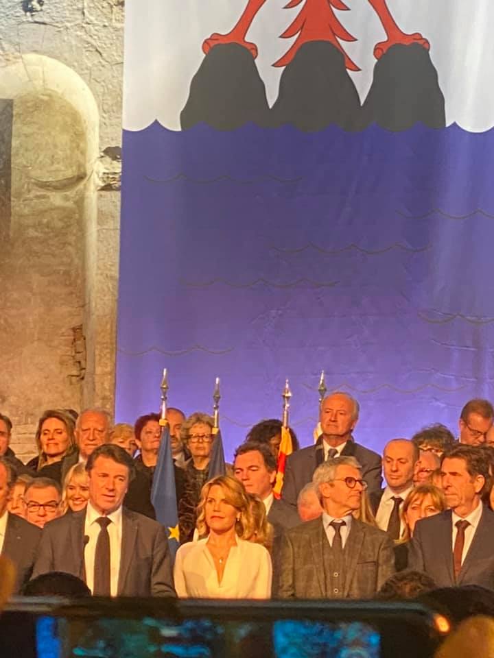 Dans un scénario un tantinet chargé, style Kremlin , les conseilleurs régionaux, les maires de la Métropole, les conseillers municipaux niçois étaient enrégimentés derrrière les parlementaires ( une notation particulière pour la présence « républicaine » du député LREM Cédric Roussel , alors qu’ Eric Ciotti …bah, il ne faut quand même pas trop exagérer ).